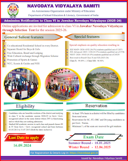 જવાહર નવોદય વિદ્યાલય ધોરણ 6 માં પ્રવેશ 2025-26 |